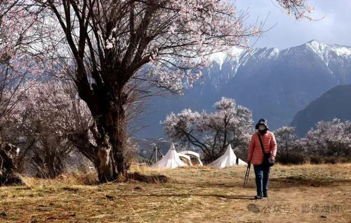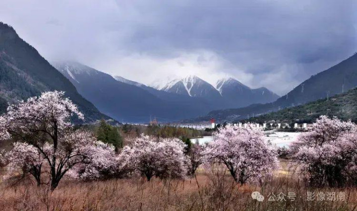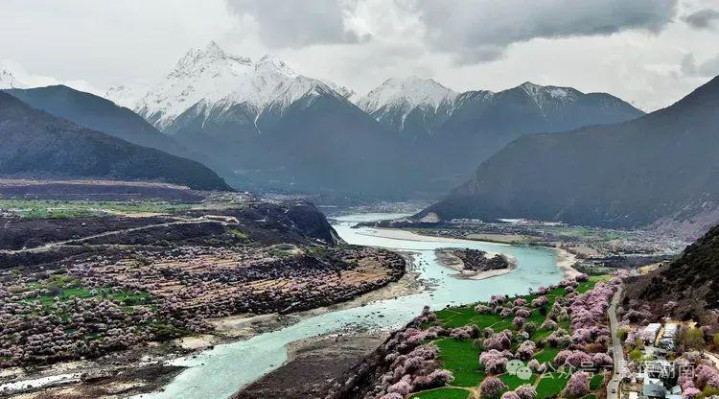 雅鲁藏布江在这里拐了个弯,南迦巴瓦峰的雪峰刺破云层时,江边的桃林突然绽开千万朵粉花,像点燃的火焰。